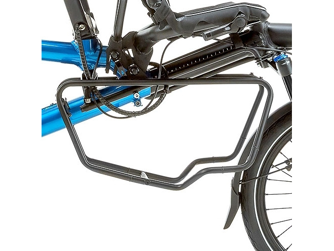 Der Lowrider von Hase Bikes ermöglicht es, auf jeder Seite jeweils eine große und eine kleine Tasche zu befestigen. Passend für die GRAVIT Lastenräder.